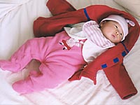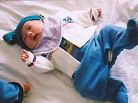 間もなく4ヶ月になろうとするユカちゃん。しばらくはお兄ちゃんのお古を着ていたので、青いものばかりで、、。やはり男の子みたいです。(;;)